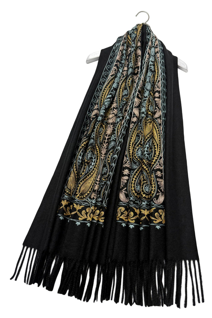 Embroidered Paisley Shawl-Scarf - Black