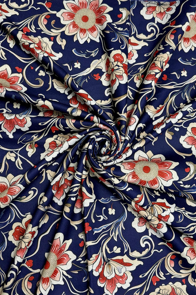 A luxuriously, bold floral design, printed one-sided that can also be used as a Shawl or Pashmina Wrap.