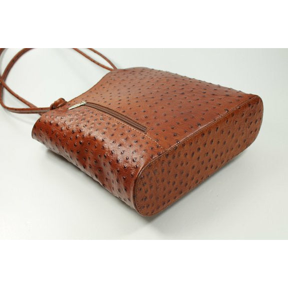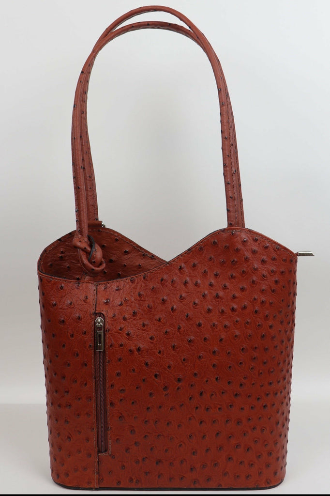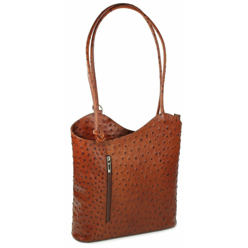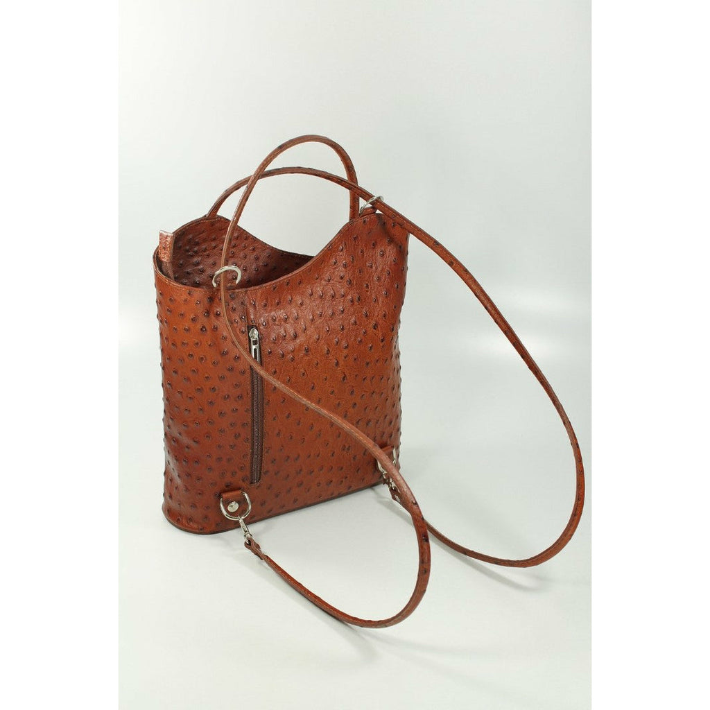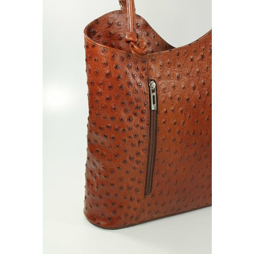 Ostrich Effect Leather Backpack Handbag - Dark Tan
