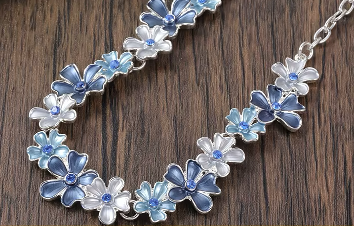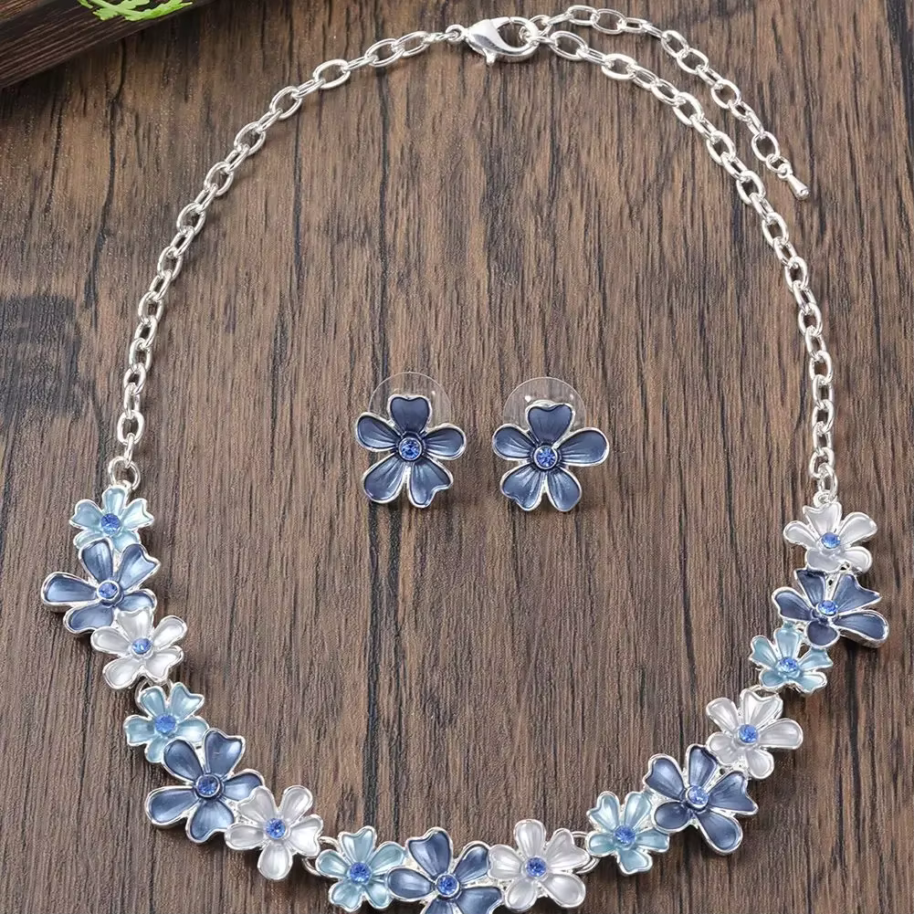 Daisy Necklace & Matching Earrings - Silver/Blues