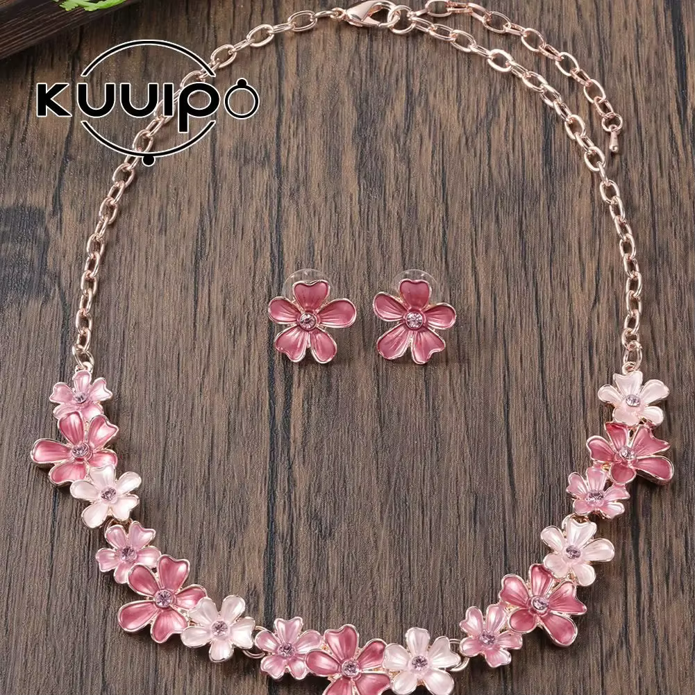 Daisy Necklace & Matching Earrings - Rose Gold/Pinks