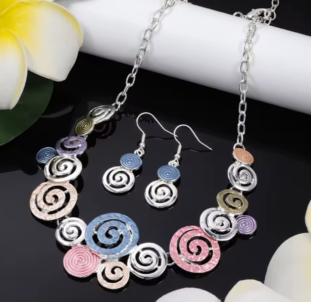 Spiral Necklace & Matching Earrings - Multicoloured