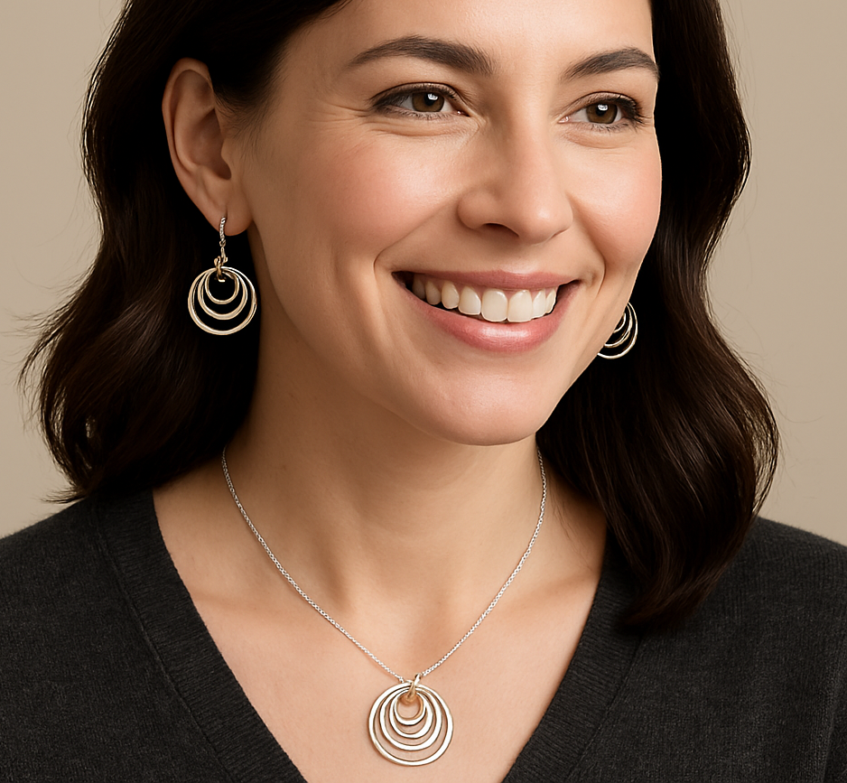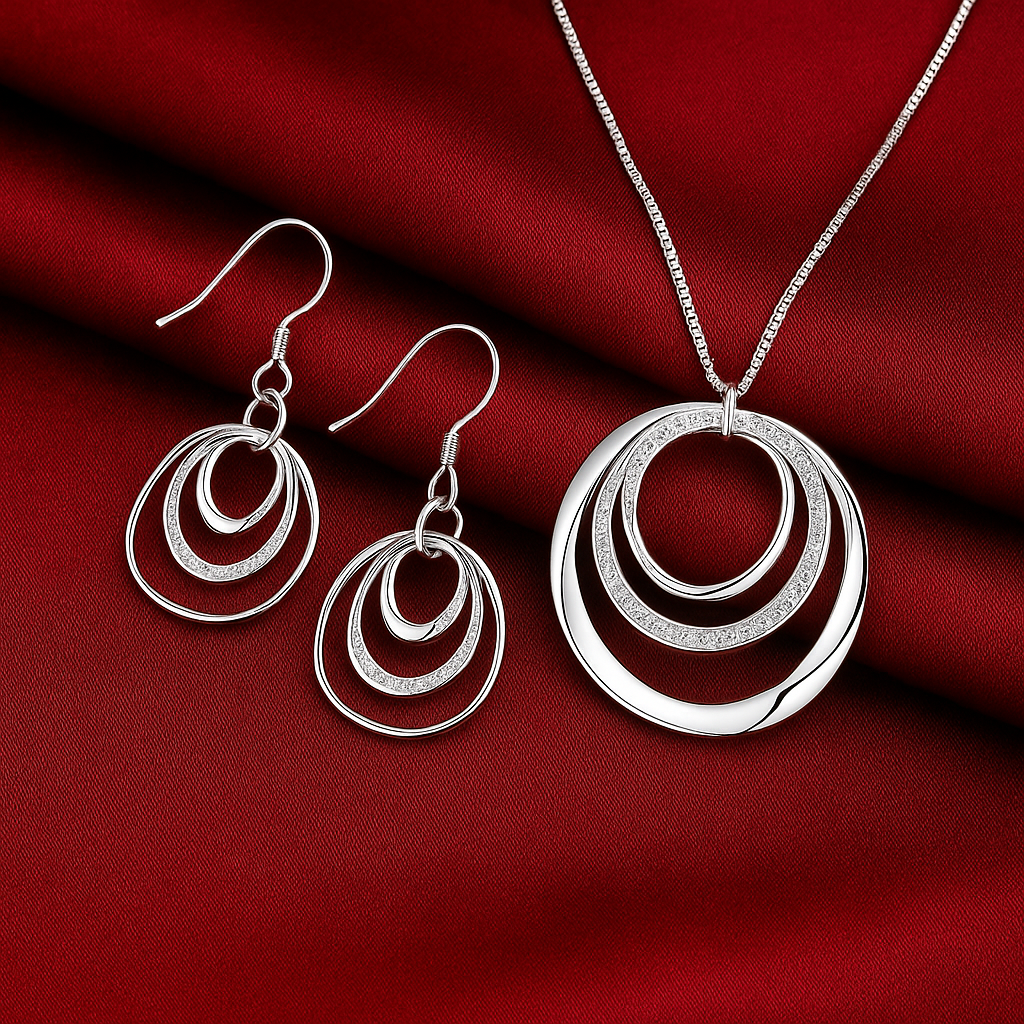• 925 Silver Design 3 Circles Necklace & Earring Set