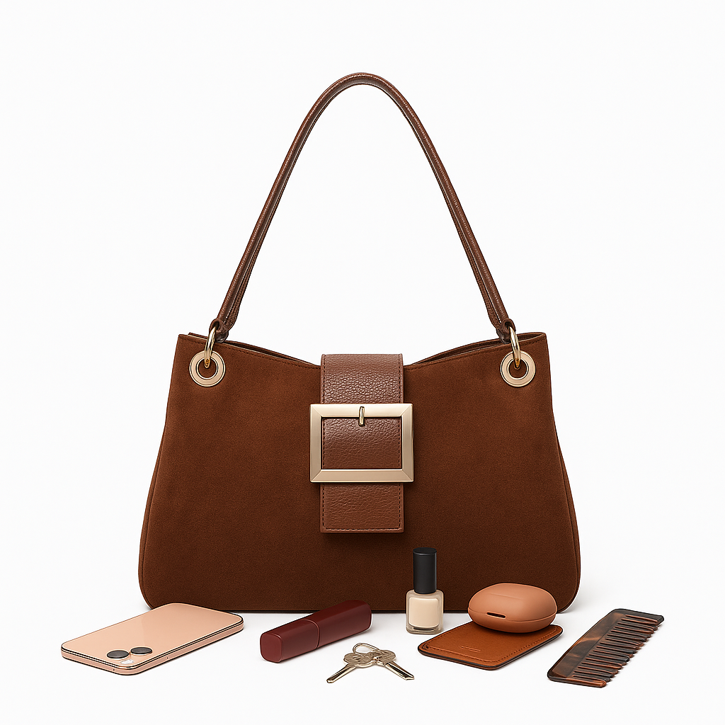 A really versatile, multi-compartment should bag, ideal for the new season. Available in several colours and made from vegan suede-effect fabric.